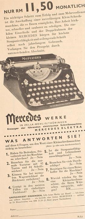 Werbeanzeige für Schreibmaschine Mercedes monochrom