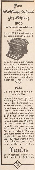 Werbeanzeige für Schreibmaschinen Mercedes monochrom