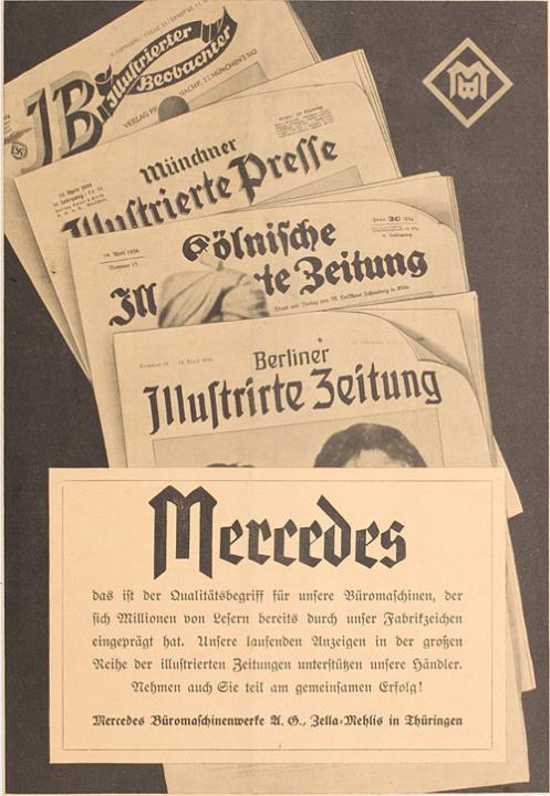 Werbeanzeige für Schreibmaschinenhersteller Mercedes monochrom