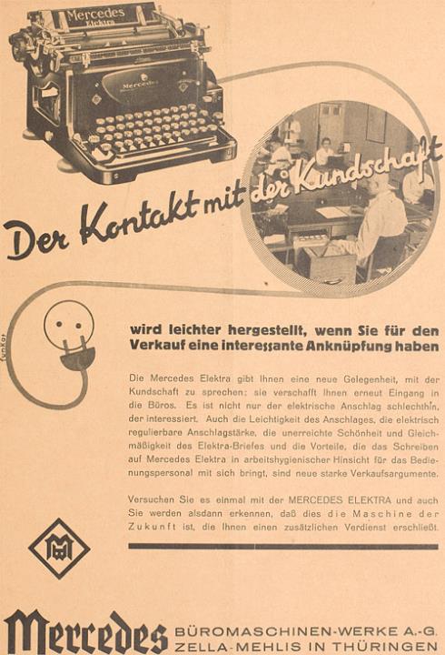 Werbeanzeige für Schreibmaschine Mercedes Elektra monochrom