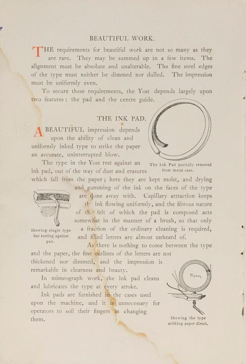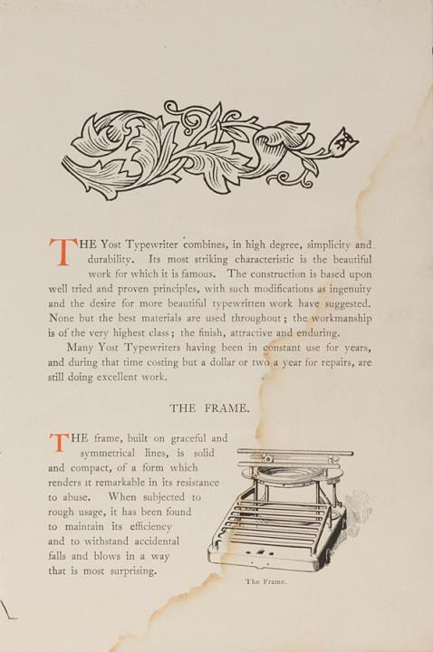 Next to literature on the history of technology, of the typewriter and the office, the Archive holds patent letters, textbooks and instruction manuals as well as historical postcards, letters, photographs and various kinds of advertising (leaflets and brochures, advertising stamps, newspaper ads, posters and signs, promotional gifts).