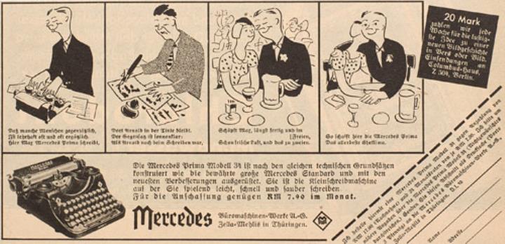 Werbeanzeige für Schreibmaschine Mercedes Prima 34 monochrom