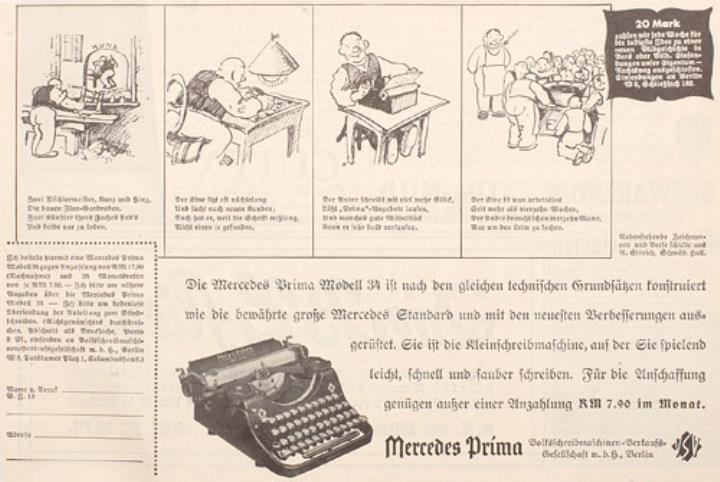 Werbeanzeige für Schreibmaschine Mercedes Prima 34 monochrom