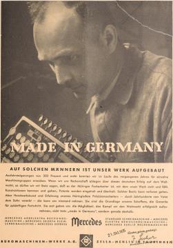 Werbeanzeige für Schreibmaschinenhersteller Mercedes monochrom