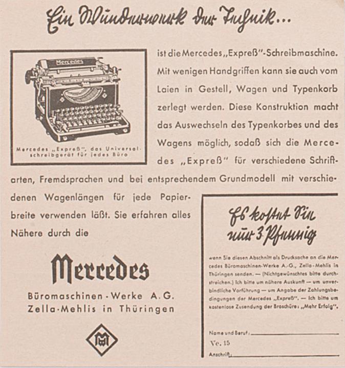 Werbeanzeige für Schreibmaschine Mercedes Express monochrom