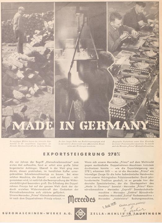 Werbeanzeige für Schreibmaschinenhersteller Mercedes monochrom