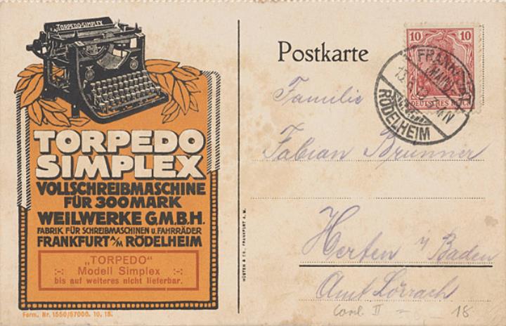 Torpedo Simplex Vollschreibmaschine für 300 Mark