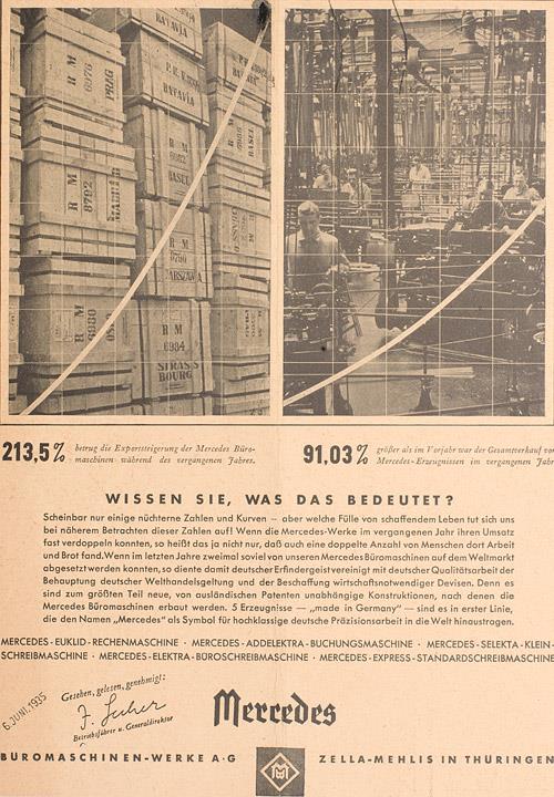 Werbeanzeige für Schreibmaschinenhersteller Mercedes monochrom