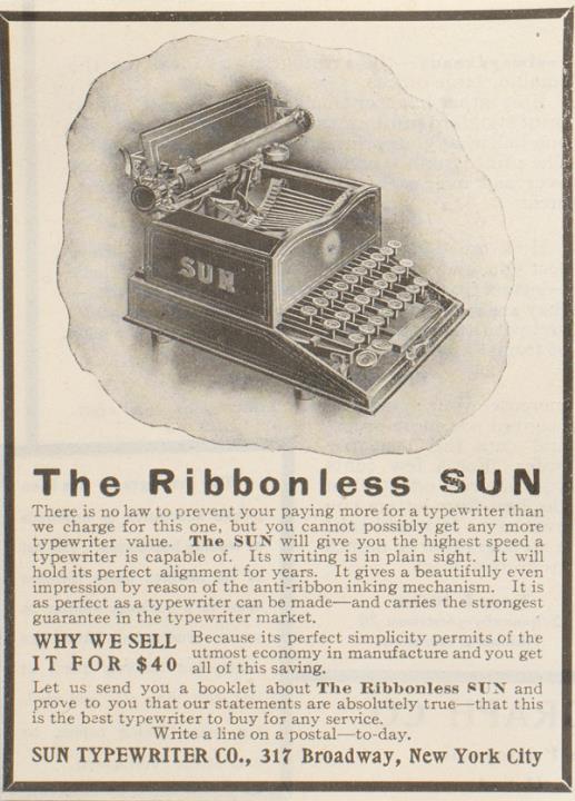 Werbeanzeige für Schreibmaschine Sun monochrom