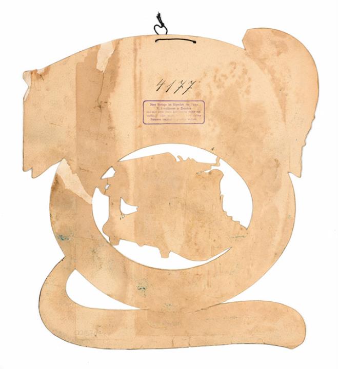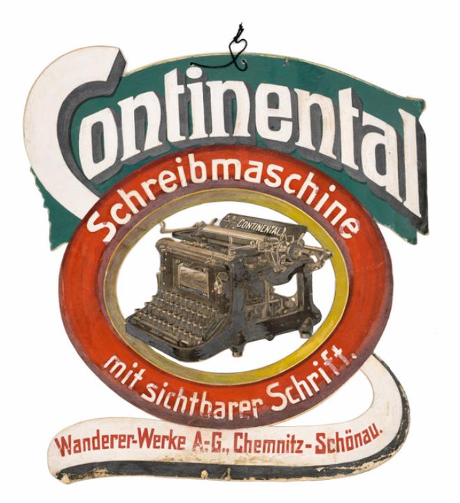 Werbeschild aus Pappkarton (handgemalte Druckvorlage) für Schreibmaschine Continental Rückseite mit Nummer und Stempel: 4177 / P. Friedländer in Dresden [...]