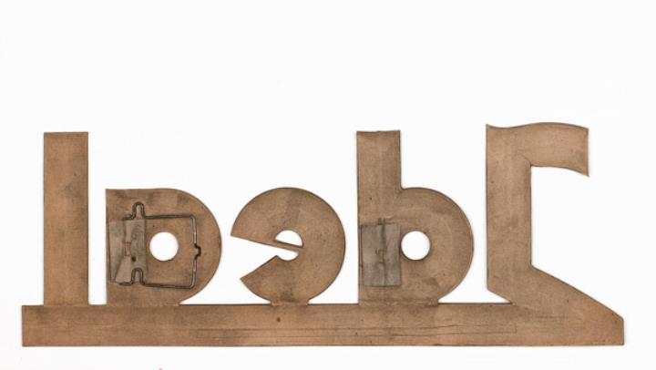 Werbeschild aus Karton für Schreibmaschine Ideal polychrom