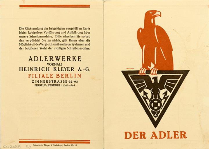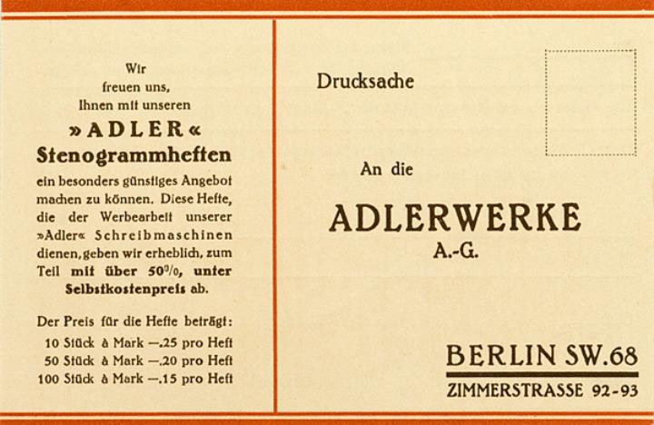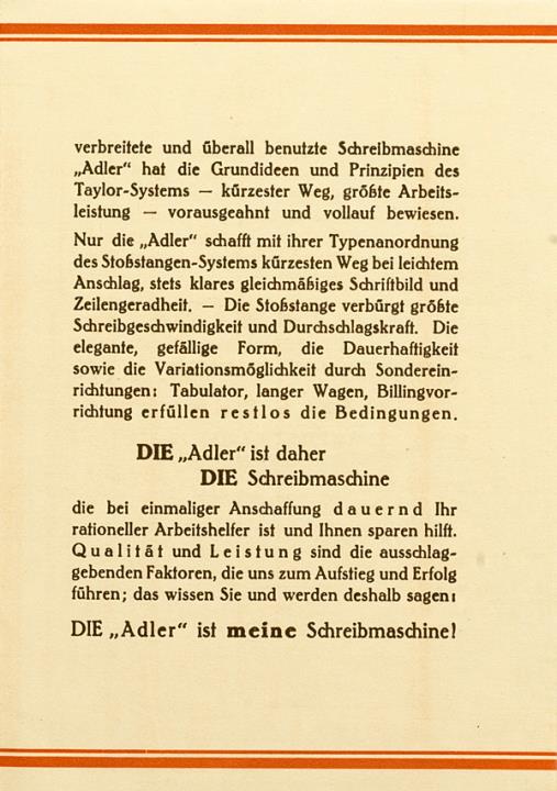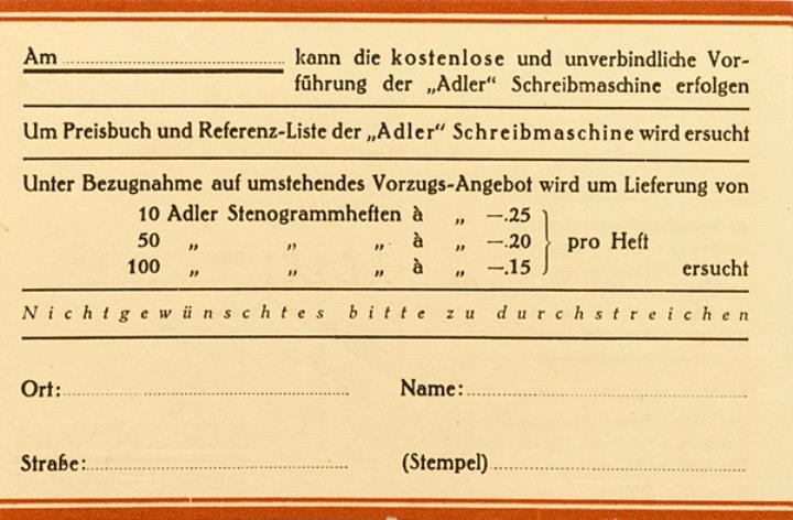 Faltprospekt für Schreibmaschine Adler, mit Antwortkarte