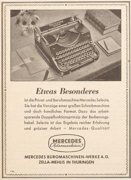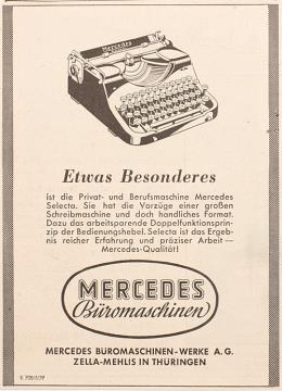 Werbeanzeige für Büromaschinen Mercedes monochrom