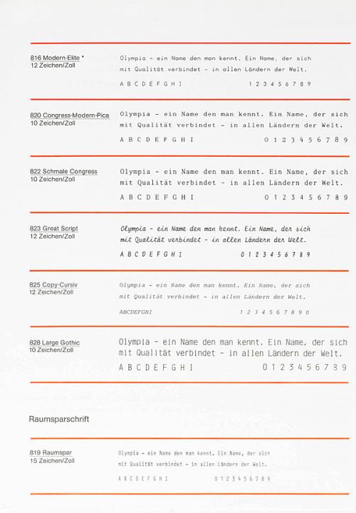 Schriftartenverzeichnis für Schreibmaschine Olympia ES Nr. 1/22/020/01