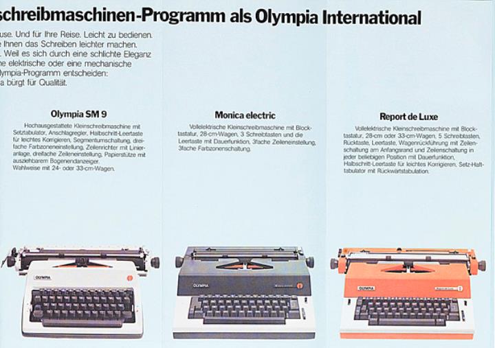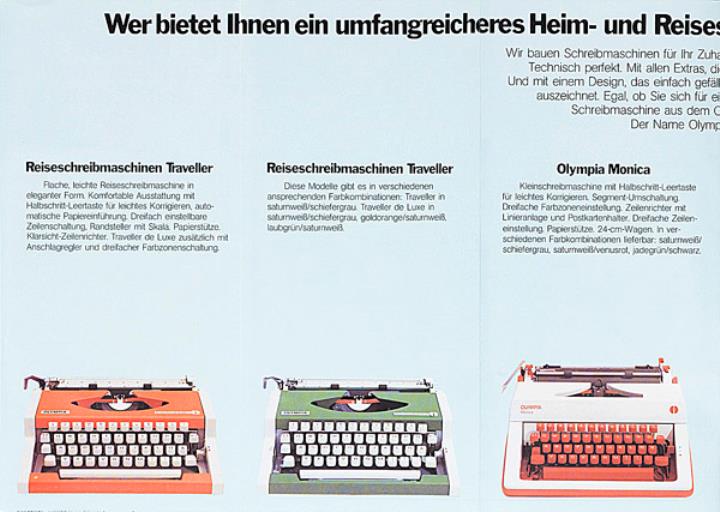 Faltprospekt für Klein- und Reiseschreibmaschinen Olympia Nr. 1/11/001/01