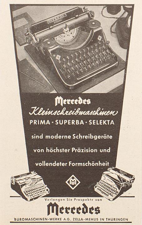 Werbeanzeige für Schreibmaschine Mercedes monochrom