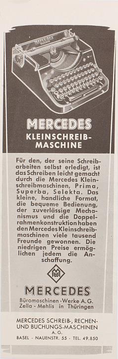 Werbeanzeige für Schreibmaschine Mercedes Selekta monochrom