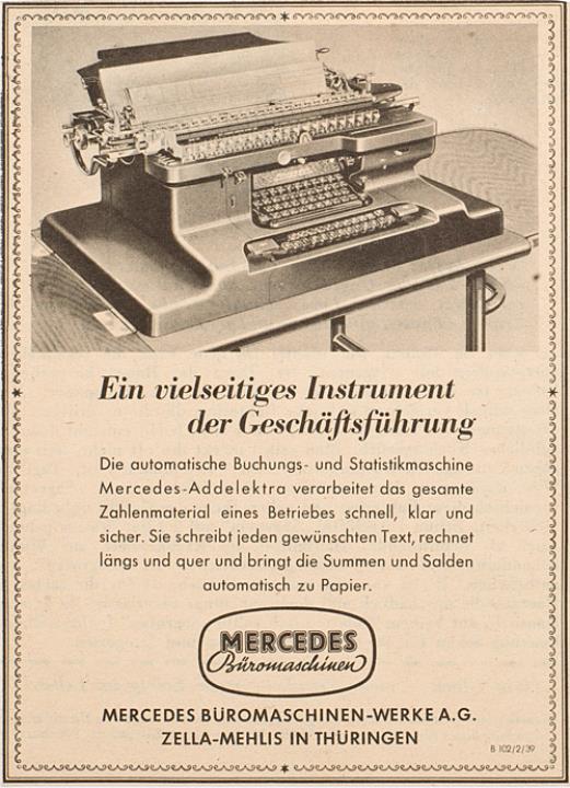 Werbeanzeige für Schreib- und Buchungsmaschine Mercedes Addelektra monochrom