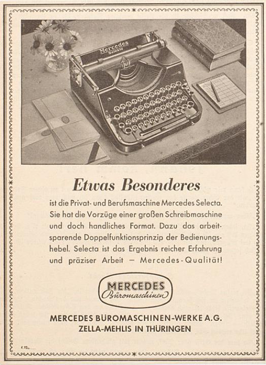 Werbeanzeige für Schreibmaschine Mercedes Selecta monochrom