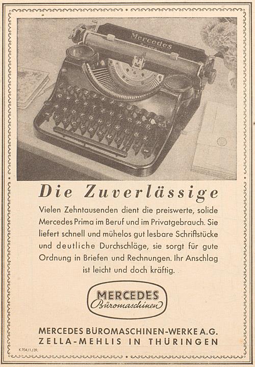 Werbeanzeige für Schreibmaschine Mercedes Prima monochrom