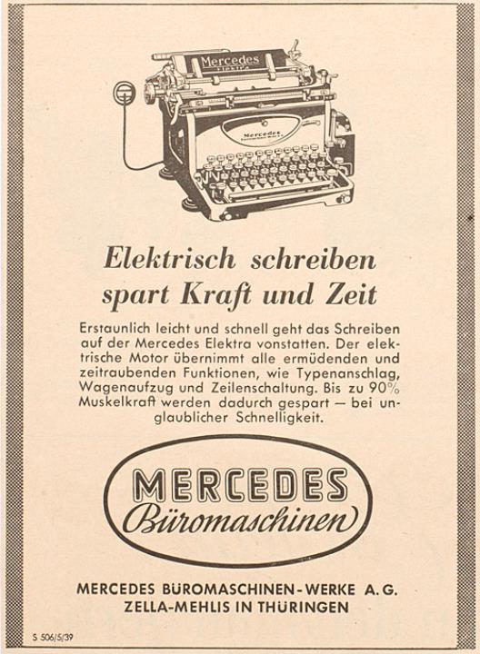 Werbeanzeige für Schreibmaschine Mercedes Elektra monochrom