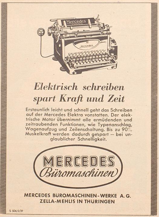 Werbeanzeige für Schreibmaschine Mercedes Elektra monochrom