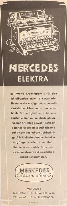 Werbeanzeige für Schreibmaschine Mercedes Elektra monochrom
