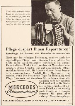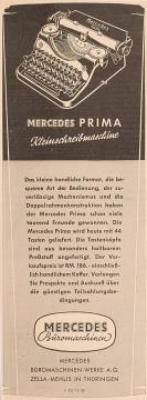 Werbeanzeige für Schreibmaschine Mercedes monochrom