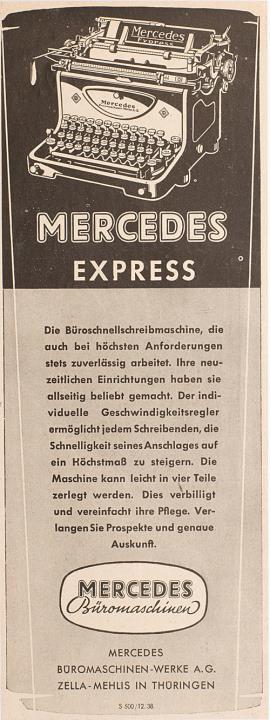 Werbeanzeige für Schreibmaschine Mercedes Express monochrom