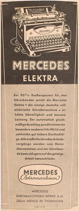 Werbeanzeige für Schreibmaschine Mercedes Elektra monochrom