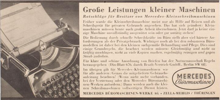 Werbeanzeige für Schreibmaschine Mercedes monochrom