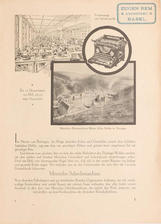 Werbeanzeige für Schreibmaschinenhersteller Mercedes monochrom