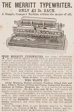 Next to literature on the history of technology, of the typewriter and the office, the Archive holds patent letters, textbooks and instruction manuals as well as historical postcards, letters, photographs and various kinds of advertising (leaflets and brochures, advertising stamps, newspaper ads, posters and signs, promotional gifts).