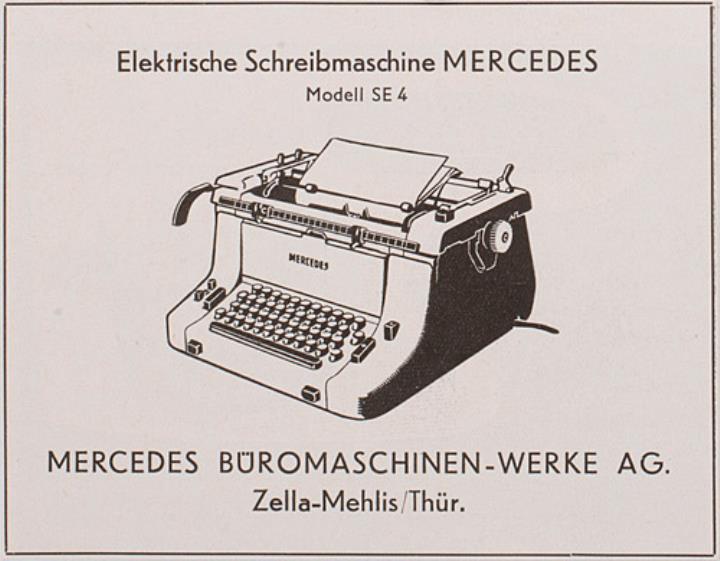 Werbeanzeige für Schreibmaschine Mercedes SE 4 monochrom