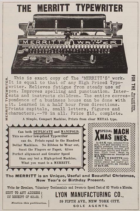 Werbeanzeige für Schreibmaschine Merritt monochrom