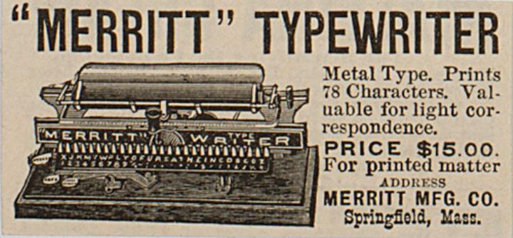 Werbeanzeige für Schreibmaschine Merritt monochrom