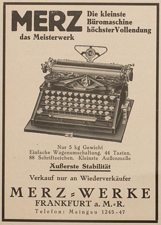Werbeanzeige für Schreibmaschine Merz monochrom