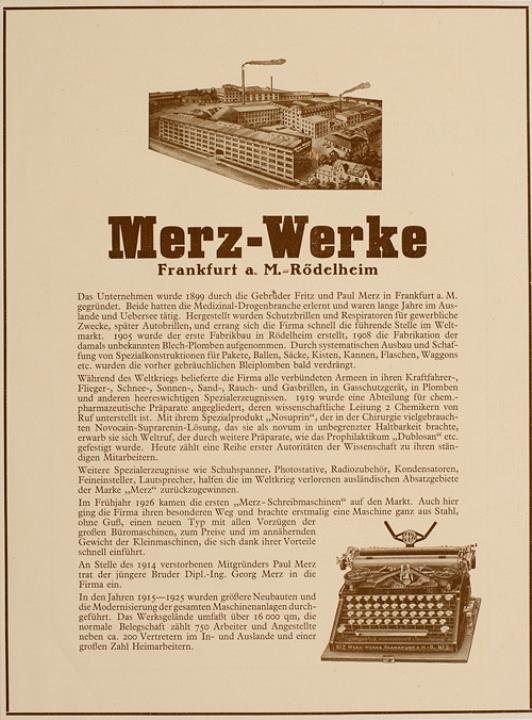 Werbeanzeige für Schreibmaschinenhersteller Merz monochrom