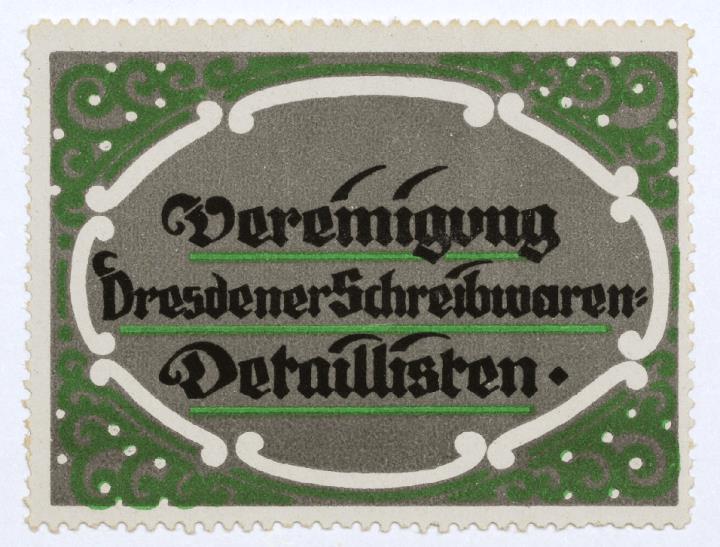 Reklamemarke/Werbemarke für Verein Dresdner Schreibwaren-Einzelhändler rechteckig, polychrom