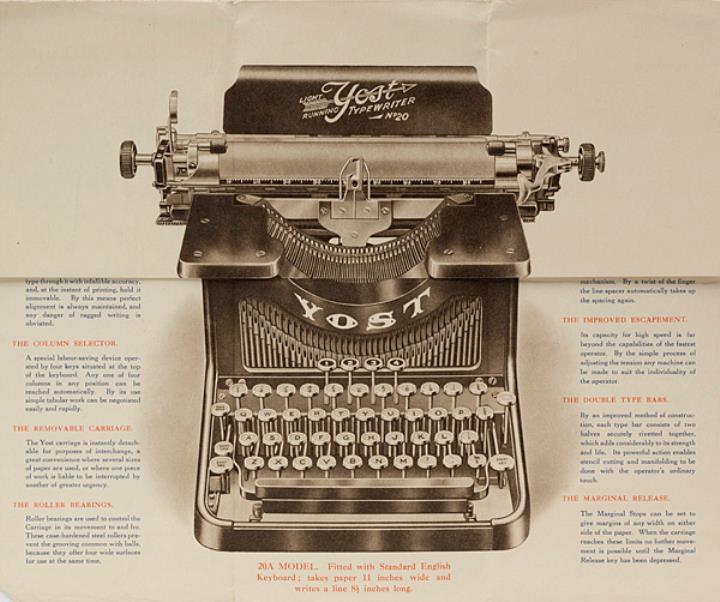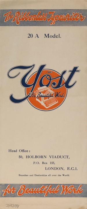 Faltprospekt für Schreibmaschine Yost 20 for Beautiful Work