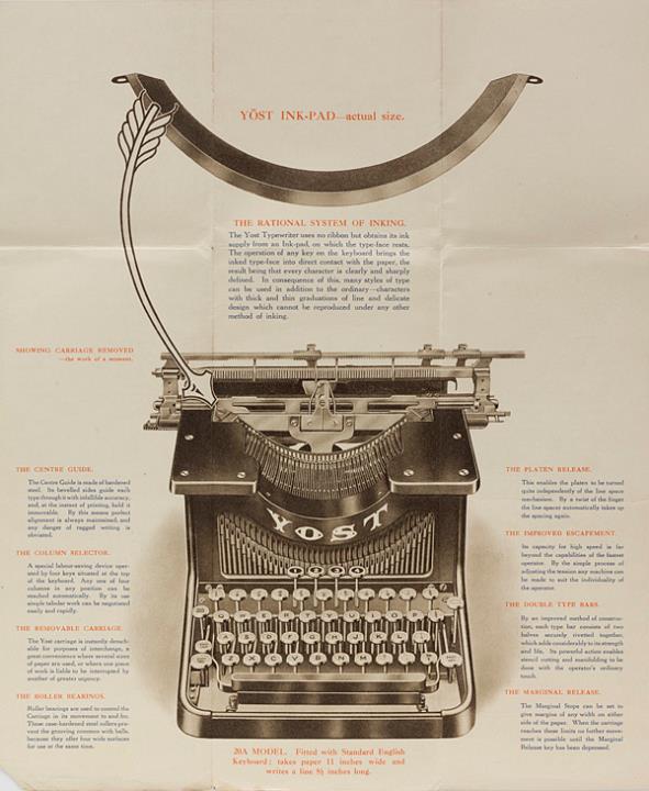 The Ribbonless Typewriter Yōst 20 A Model