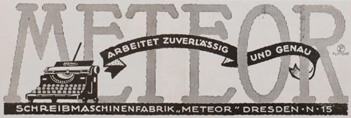 Werbeanzeige für Schreibmaschine Meteor monochrom; Grafik: Flittert