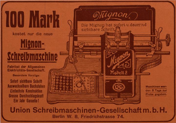 Werbeanzeige für Schreibmaschine Mignon monochrom