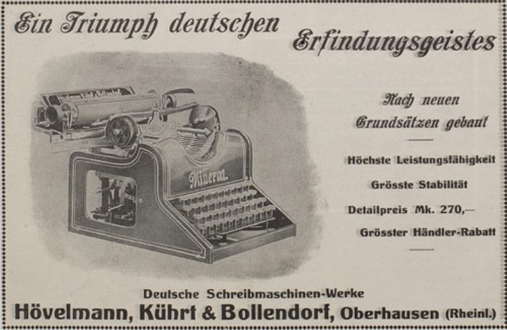 Werbeanzeige für Schreibmaschine Minerva monochrom