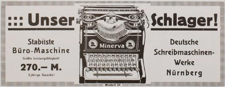 Werbeanzeige für Schreibmaschine Minerva monochrom