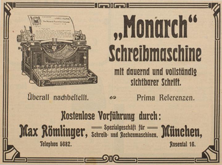 Werbeanzeige für Schreibmaschine Monarch monochrom