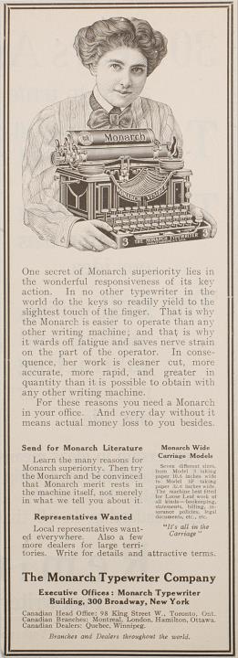 Werbeanzeige für Schreibmaschine Monarch monochrom
