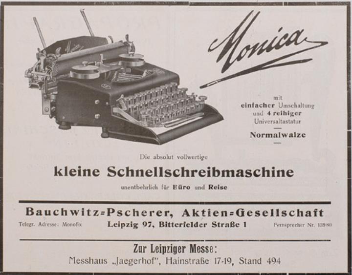 Werbeanzeige für Schreibmaschine Monica monochrom