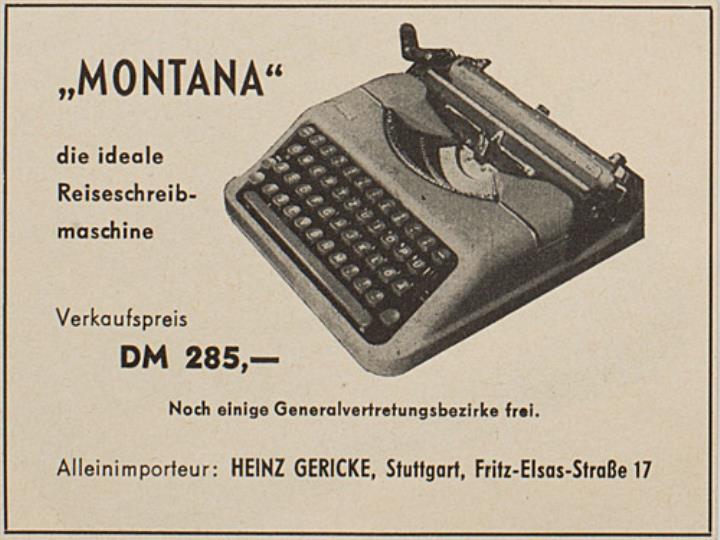 Werbeanzeige für Schreibmaschine Montana monochrom
