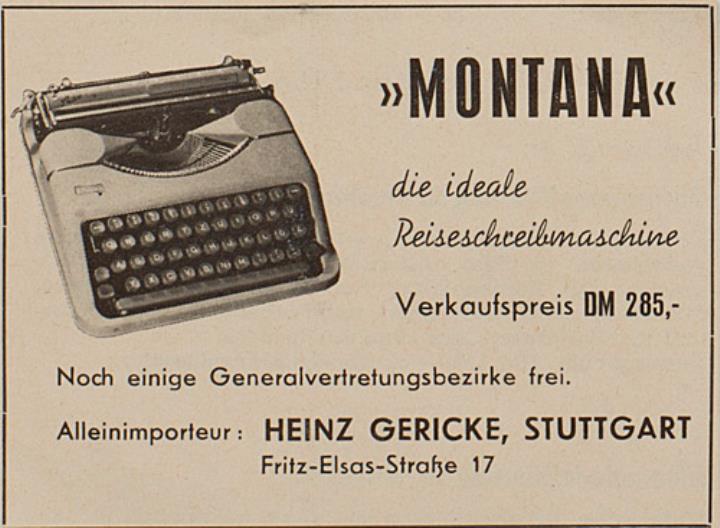 Werbeanzeige für Schreibmaschine Montana monochrom